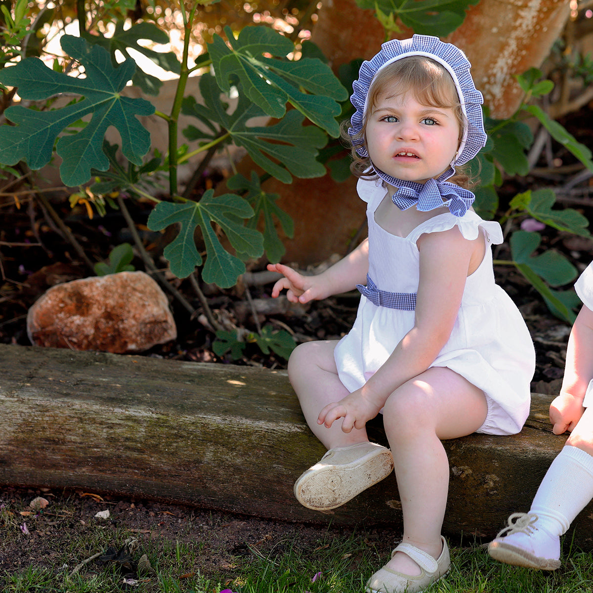 Rapife white/navy romper with matching bonnet SS26